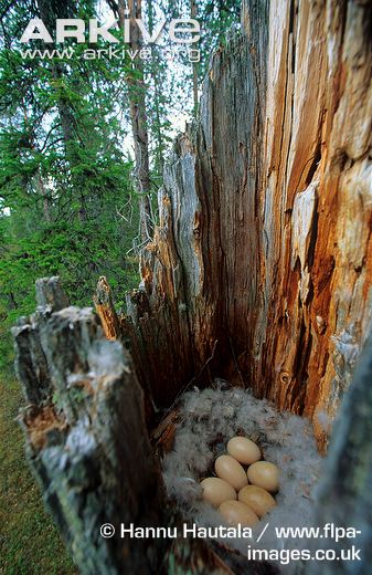 Стороннього матеріалу в гніздо не додається жодного, рясна вистилка складається лише зі світло-сірого, майже білого пуху, який самка висмикує з своїх грудей. У кладці зазвичай 8-12 яєць вершково-білого або кремового кольору. Насиджує одна самка протягом 30-32 днів. Іноді селезень перебуває поруч з качкою аж до появи нащадків, проте найчастіше він залишає неї назавжди. Самка робить перерви в насиджуванні, прикриваючи яйця пухом і вирушаючи на пошуки їжі. Пташенята, які щойно вилупились покриті пухом - оливково-бурим зверху і білуватим знизу. Пробувши в гнізді добу чи дві, вони парашутом вистрибують з дупла і біжать слідом за мамою до води. Перший час каченята не пірнають, а живляться на мілководді, збираючи комах і їх личинок з поверхні води. У віці близько 10 днів вони починають ловити мальків, вчаться швидко плавати і стають більш самостійними; виводки поступово розпадаються. Рятуючись від переслідування хижака, пташенята швидко і тривалий час біжать по воді, не вибиваючись з сил. Молоді піднімаються на крило у віці 60-70 днів.