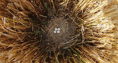 На весняному прольоті лунь лучний зустрічається поодинокими особинами або парами, мабуть, уже гніздовими. Приліт птахів українських гніздових популяцій і проліт птахів північних популяцій відбувається звичайно на 7—10 діб пізніше, ніж луня степового. Гніздо завжди влаштовує на землі, іноді на досить вологому місці або поблизу води, але не над водою. Звичайно гнізда луня лучного знаходяться у високій лучній траві, а в болотистій місцевості — у заростях болотних рослин або й у розрідженому очереті; у степу - у заростях пижма (Tanacetum vulgare), бобовника (Amygdalus nana), дерези (Caragana frutescens), пирію (Triticum repens), таволги (Filipendula), валеріани (Valeriana officinalis), поблизу будь-якого куща. Порівняно невелике гніздо — це досить безладно складені у заглиблення або просто на ґрунт стебла бур'яну (Amaranthus, Erigeron тощо) і гілки кущів (Alnus, Salix тощо), які оточують більш-менш акуратний лоток. Грубі стебла належать тим рослинам, серед яких збудовано гніздо, а також (у гніздах із степової місцевості) шавлії (Salvia verticillata), полину (Artemisia vulgaris, A. absinthium), ліщині (Gypsophila paniculata), коров'якові (Verbascum thapsus) і тирсі (Stipa capillata). Лоток складається з м'якших стебел тих самих рослин, в ньому трапляються солома з культурних злаків, пера самки луня, зрідка й пелетки. У деяких гніздах зовнішньої частини майже немає, це просто заглиблення в ґрунті з невеликою кількістю вистилки.