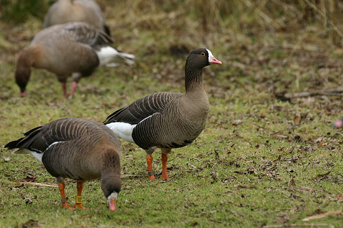 У рамках програми з відслідковування маршрутів сезонних міграцій малих гусок за допомогою супутника, яка виконувалась Норвезьким інститутом досліджень навколишнього середовиша, 5 малих гусей, що гніздилися в Скандинавії, було відловлено, закільцьовано і споряджено радіопередавачами. Згодом троє з цих птахів мігрували на південний схід, схоже, в район зимівлі на Каспії, а двоє – на південний захід, до лиманів біля узбережжя Егейського моря. Лише один із закільцьованих гусей успішно перезимував і повернувся в район гніздування в Норвегії, інших було, як вважають, відстріляно на шляхах до місць зимівлі. Одне з кілець було надіслано мисливцем, який зняв його з убитої гуски. Це свідчить про великий рівень загибелі під час міграції та в місцях зимівлі.
